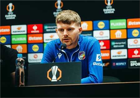 欧联杯主场对阵曼联赛前,比尔森胜利中场舒尔茨出席了新闻发布会。