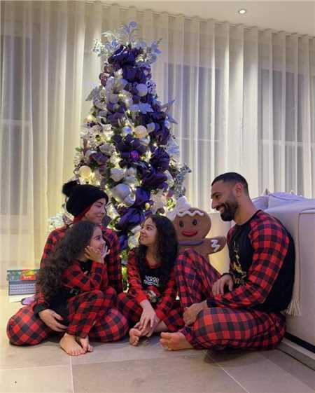 今年萨拉赫在社交媒体上晒出了自己和妻子以及两个女儿在家中圣诞树前的合影,并配文:“圣诞快乐。”