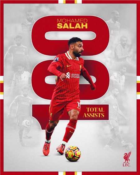英超第16轮,利物浦主场对阵富勒姆,下半场萨拉赫助攻加克波破门,至此,萨拉赫利物浦生涯已送出100次助攻。