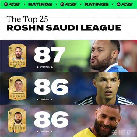 fc25各支球队球员的能力值已经陆续公布,其中沙特联赛中能力值评分最高的是利雅得新月的内马尔,他的数值达到了87,c罗、本泽马以及坎塞洛同为86并列第二。