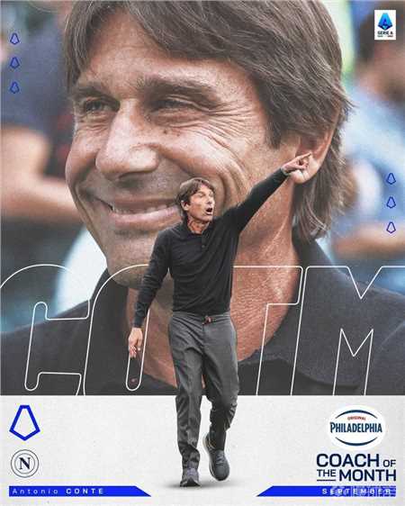 北京时间10月3日,意甲官方宣布,那不勒斯主帅孔蒂当选联赛9月最佳教练。